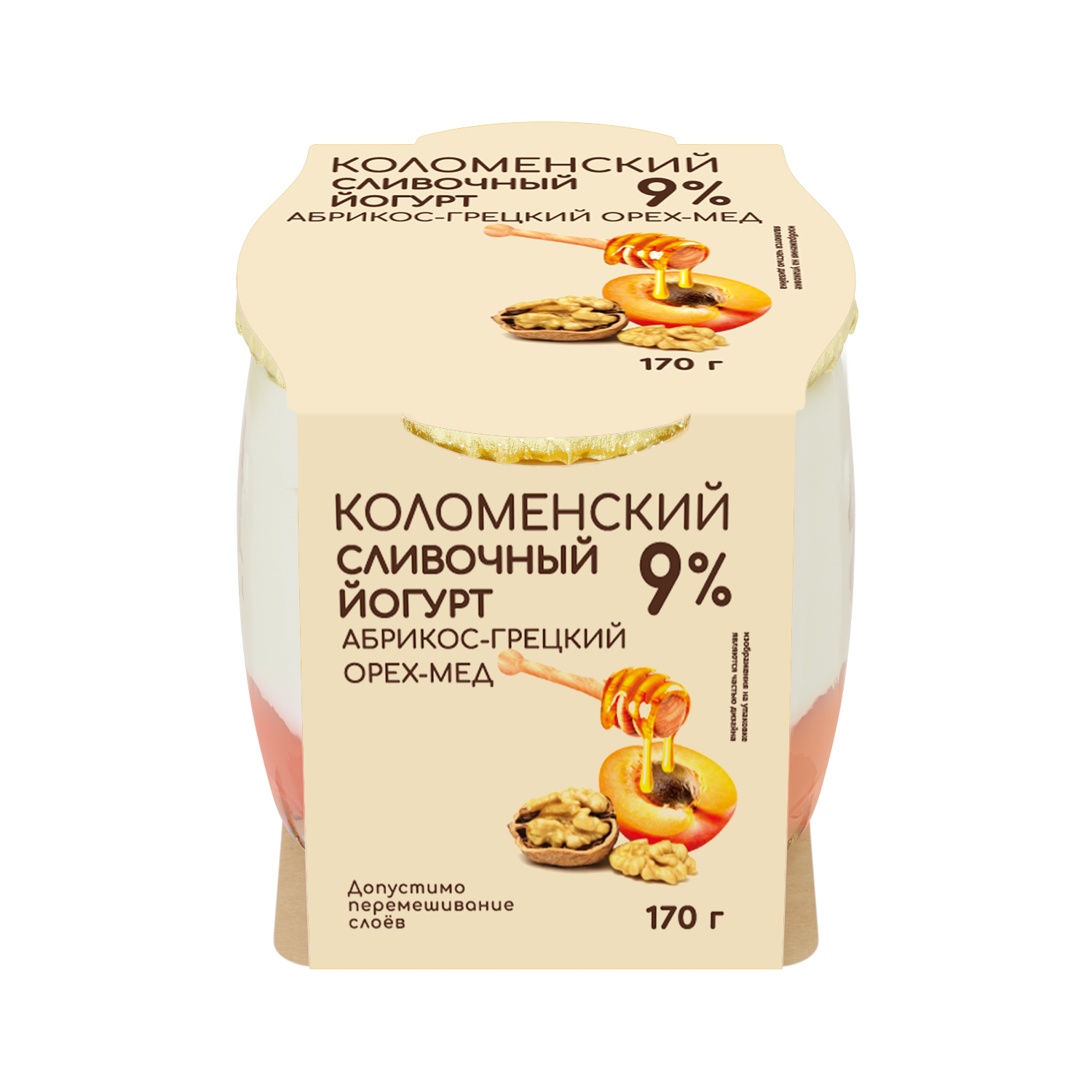 Йогурт «Коломенский» сливочный с наполнителем «Абрикос - грецкий орех - мёд» с массовой долей жира 9%